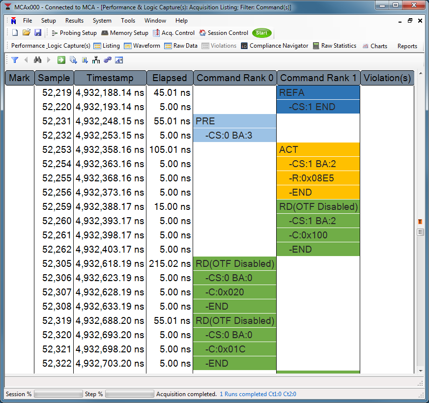 MA5100 LPDDR4 State Listing Window ExampleMA5100 LPDDR5 Command Listing Example